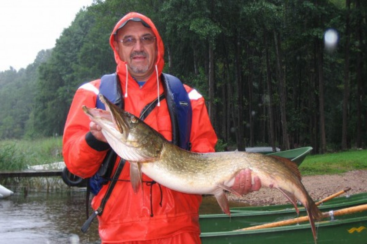 В субботу на оз. Пузес вентспилсчанин Владимир Одинцов поймал щуку весом 9,6 кг.