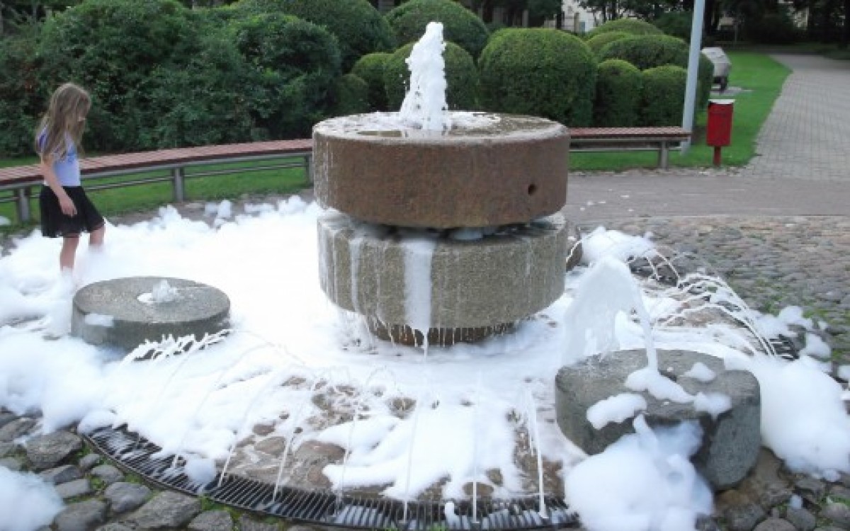 "Вчера около 19.30 какой-то шутник снова залил в фонтан на площади Дзирнаву какое-то пенистое средство, в результате чего детишки (литовцы) очень весело провели время", - пишет Райтис.