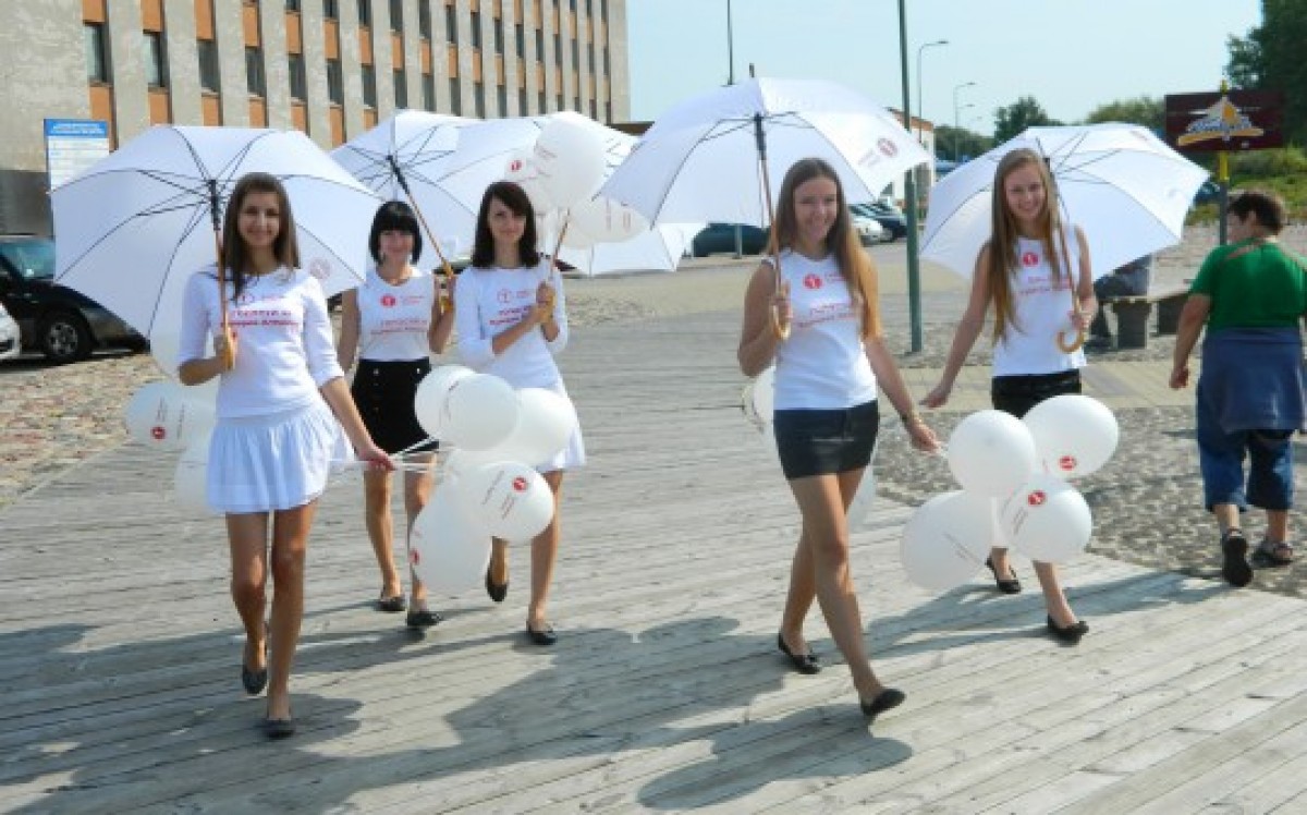 В этом можно было убедиться на недавно состоявшемся в Вентспилсе мероприятии, которое на современный лад звучит как флэшмоб. На территории пляжа и парковой зоне распустились огромные белые цветы – выпорхнула стайка девушек в одинаковых майках под белыми зонтами. Они любезно предлагали детям воздушные шары и мороженое. Трудно себе представить ребенка безразличного к этим двум символам детского счастья. Так и видится довольное, сияющее личико ребенка, с вафельным стаканчиком в одной руке и с воздушным шариком в другой. Таких счастливчиков в тот день оказалось 200 человек – столько порций было роздано бесплатно.