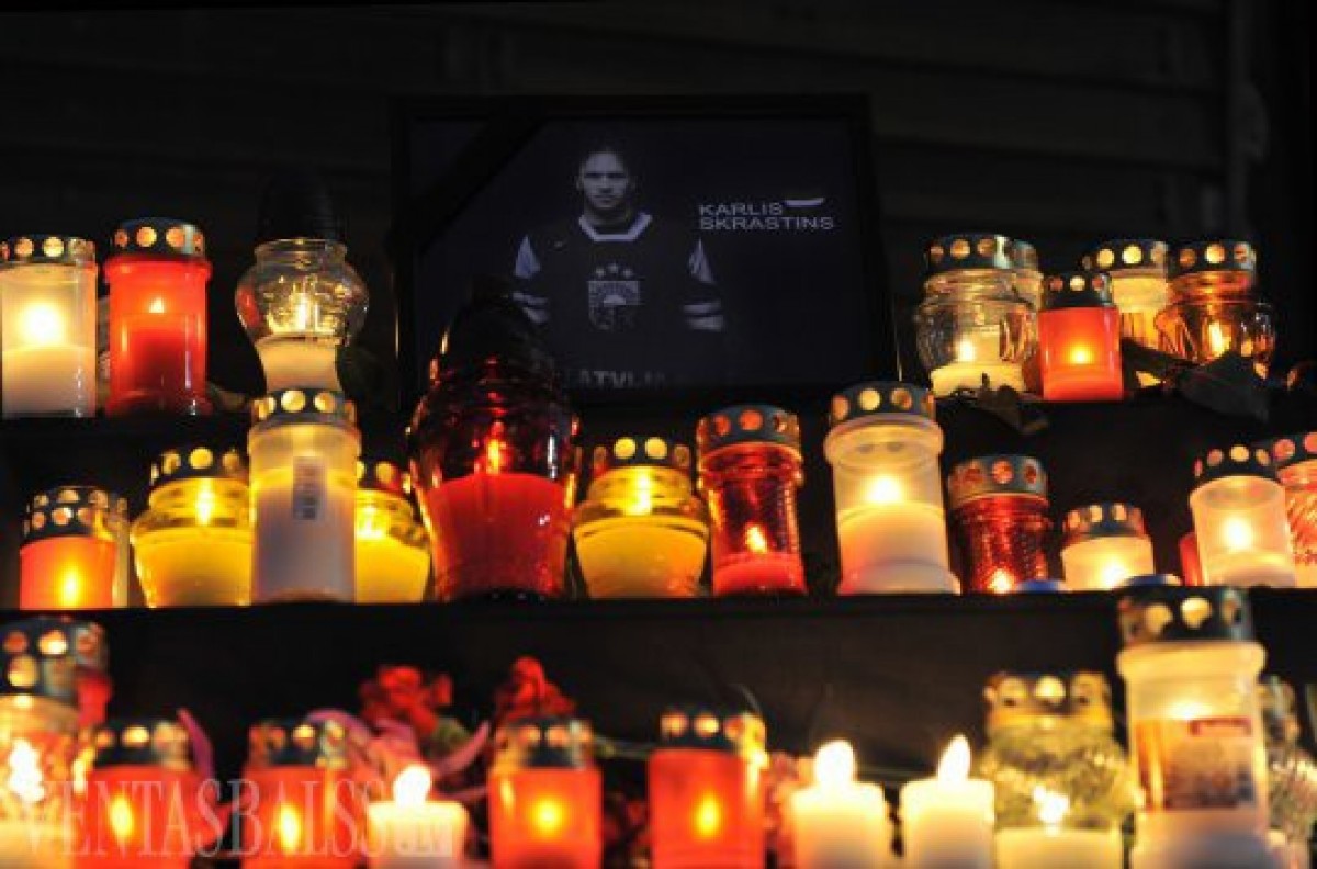На следующий день после авиакатастрофы недалеко от российского города Ярославль, которая забрала жизни почти всей хоккейной команды Локомотив, включая нашего железного человека Карлиса Скрастиньша, в фойе ледового холла было обустроено мемориальное место для трагически погибшего хоккеиста. На протяжении всего дня у холла оставляли свечи и цветы.