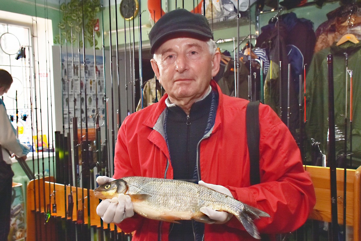 Первым участником, благодаря которому мы и решили возобновить конкурс, стал рыбак с многолетним стажем Юрий Болгаров, который принёс в магазин свой трофей – 42-сантиметровую вимбу на 900 граммов. Рыба была поймана на Венте, за Вентавой. «Размер этой рыбы больше среднего, – говорит Юрий. Мне чаще попадались вимбы поменьше, но три года назад за мостом у Злекас поймал одну весом в 1,5 кг. В этому году такая большая мне попалась впервые. Если кто-то поймает больше, пусть приходит, взвесит, будет у нас конкуренция». Ждал улова Юрий долго – клёв был слабый. Но на тигровую креветку вимба всё же польстилась.