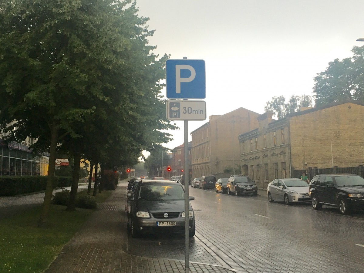 На этой неделе на стоянке у жилого дома по ул. Саулес, 33 установлен новый знак — впредь машины здесь смогут стоять не дольше 30 минут.