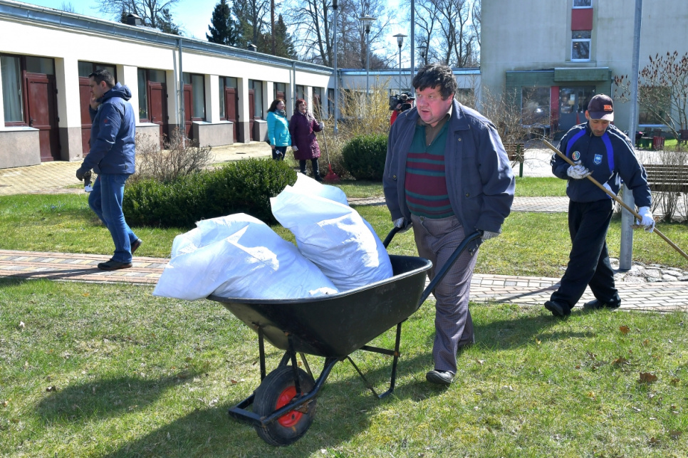 В четверг в доме социального ухода Селга прошел большой субботник. В уборке окрестностей участвовали и пенсионеры, и молодое поколение, и работники учреждения.