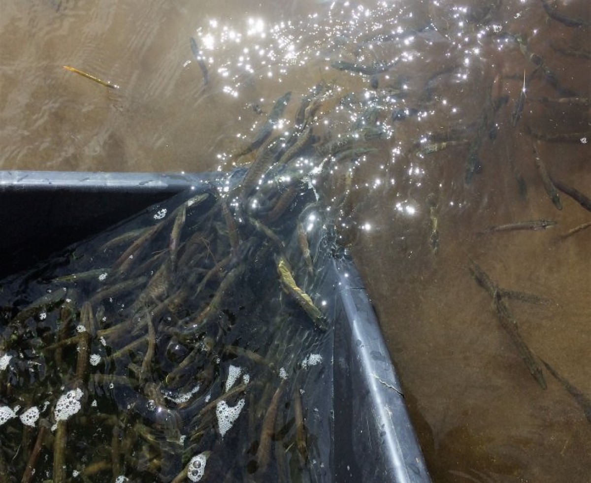 ООО Rūjas zivju audzētava 4 июня доставило и в оз. Усмас выпустило 40 479 7-сантиметровых малышей весом свыше 5 г.