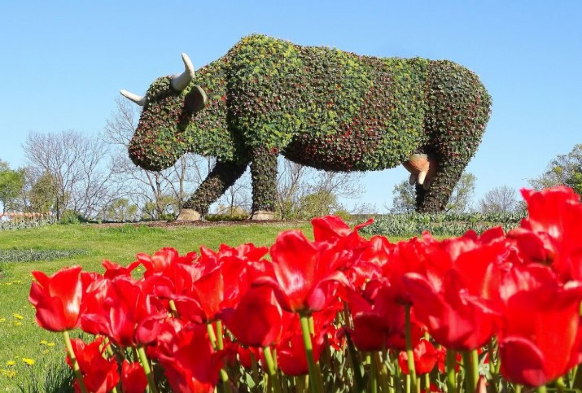 Завершилась работа по реконструкции скульптуры Цветочная коровка на лугу Сарканмуйжас, которую теперь украшают почти девять тысяч цветов.