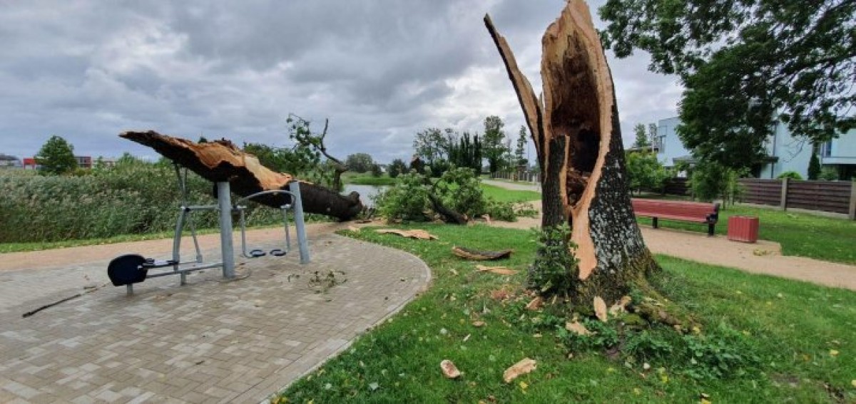 17 сентября сильный ветер повалил дерево в саду Ренькя на недавно установленные тренажеры, а также во дворе у Олимпийского центра, где оно упало на машину, припаркованную на стоянке.