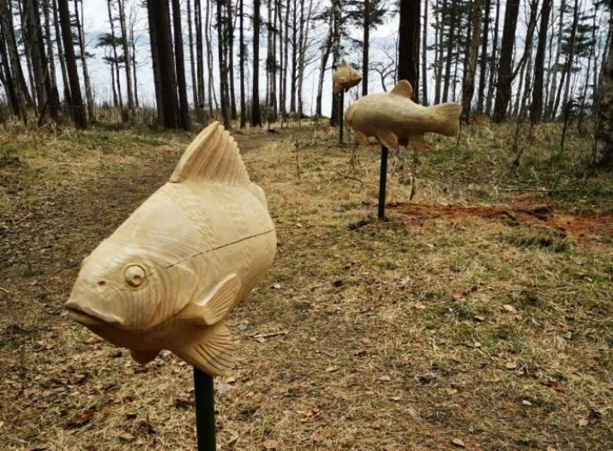 На природной тропе озера Бушниеку установлены скульптуры рыб