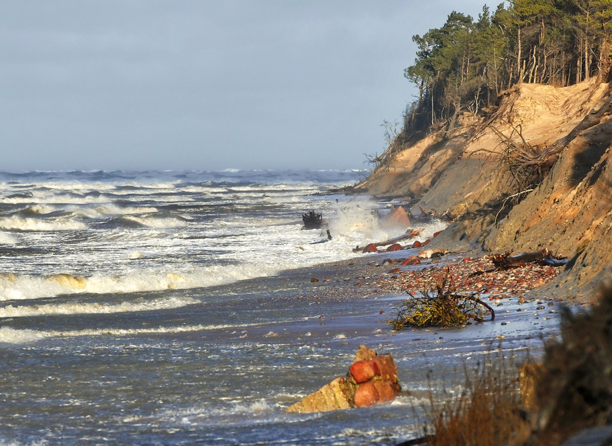 С приходом циклона из Великобритании утром в субботу на западном побережье Курземе ожидается особенно высокий уровень воды в море, что в сочетании с большими волнами может вызвать размывы и обвалы берега, - свидетельствуют прогнозы синоптиков.