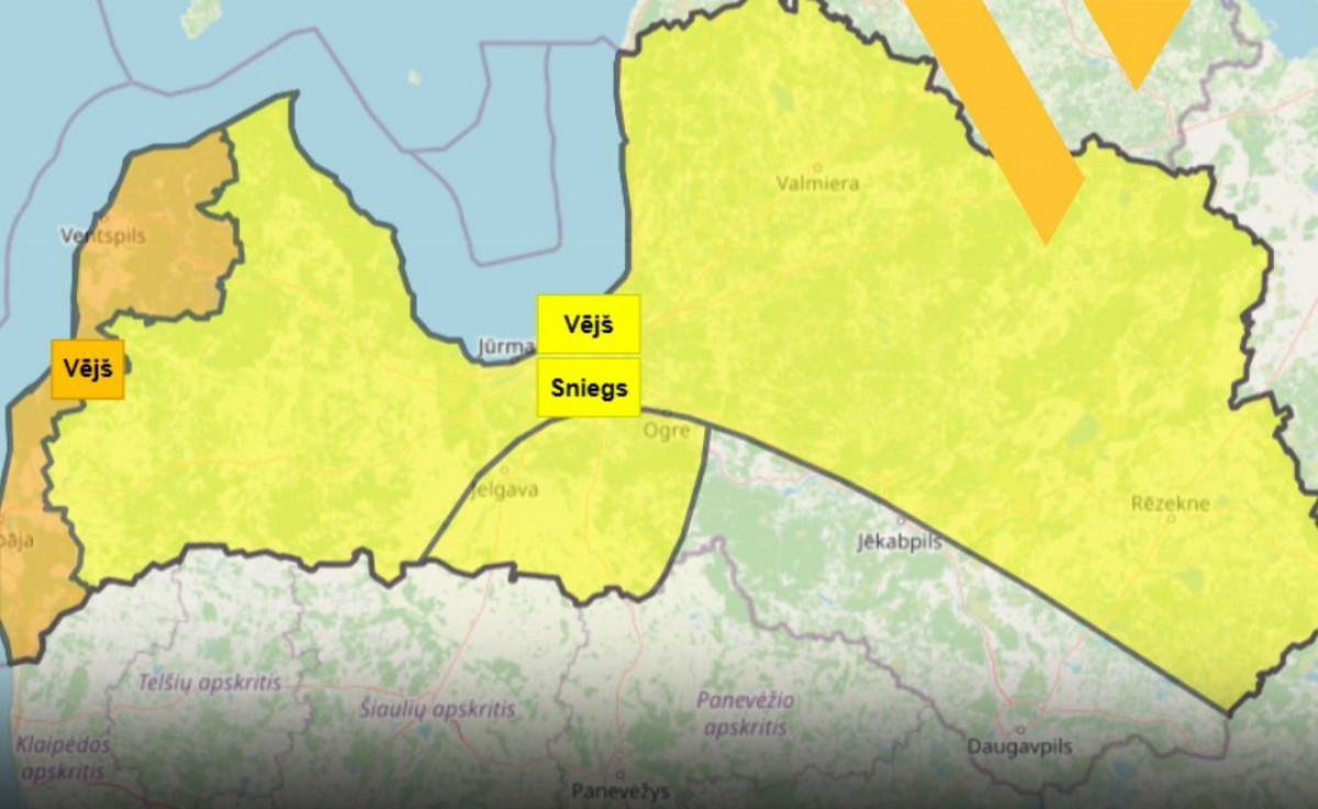 На западном побережье Курземе распространено предупреждение оранжевой степени о возможных порывах ветра скоростью до 26 метров в секунду.