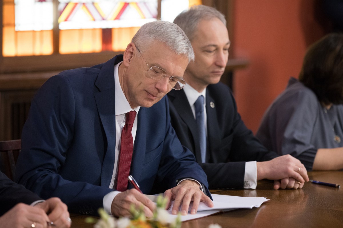 Документы подписали главы партий и фракций в присутствии будущих министров, подписавших правительственную декларацию. Подписание проходило в Красном зале Сейма.
