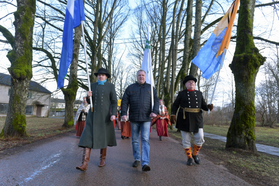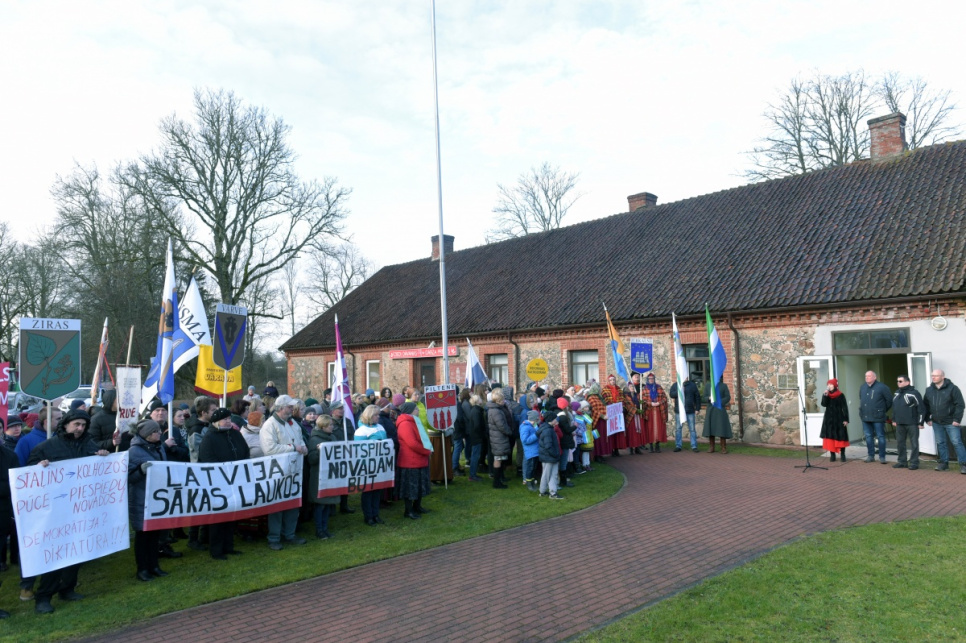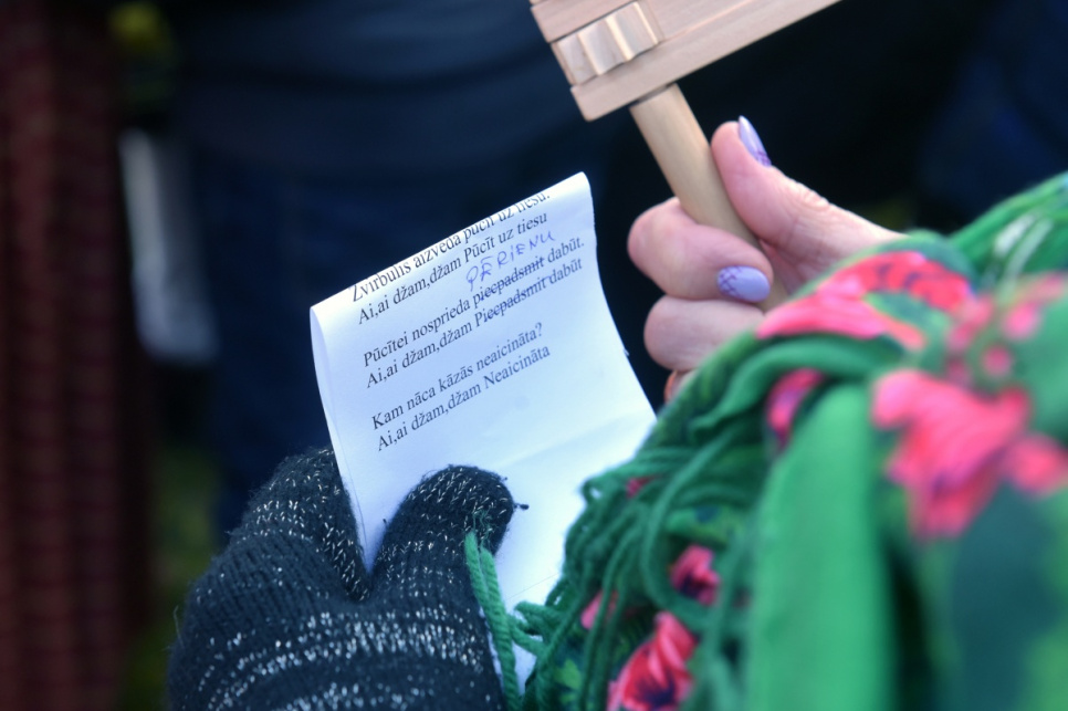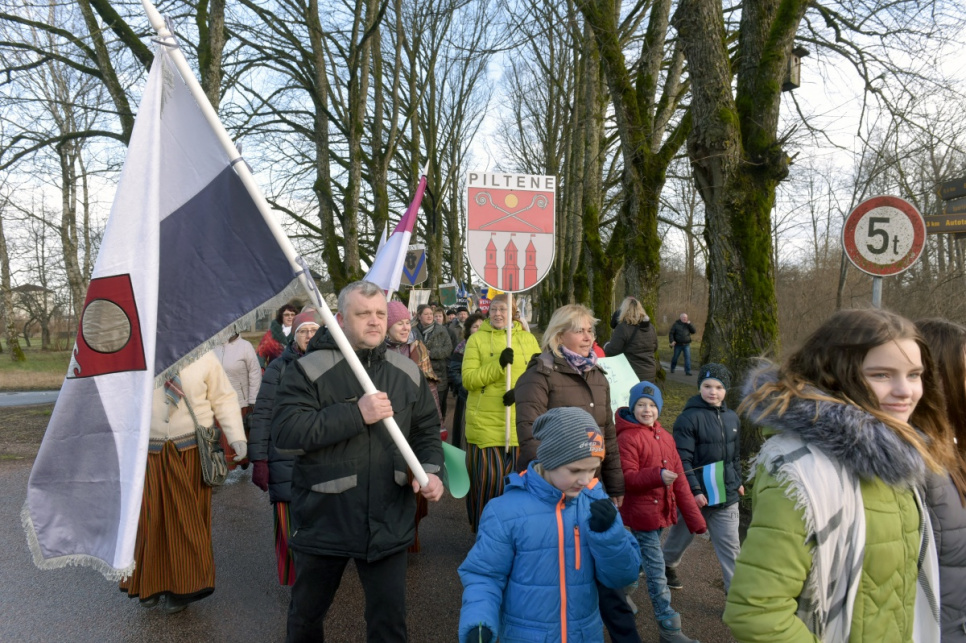 Участники акции собрались в Попенской волости, где вместе с шоферами, которые потом в автоколонне по шоссе А10 поехали до Усмы, была и часть представителей любительских коллективов Вентспилсского края.