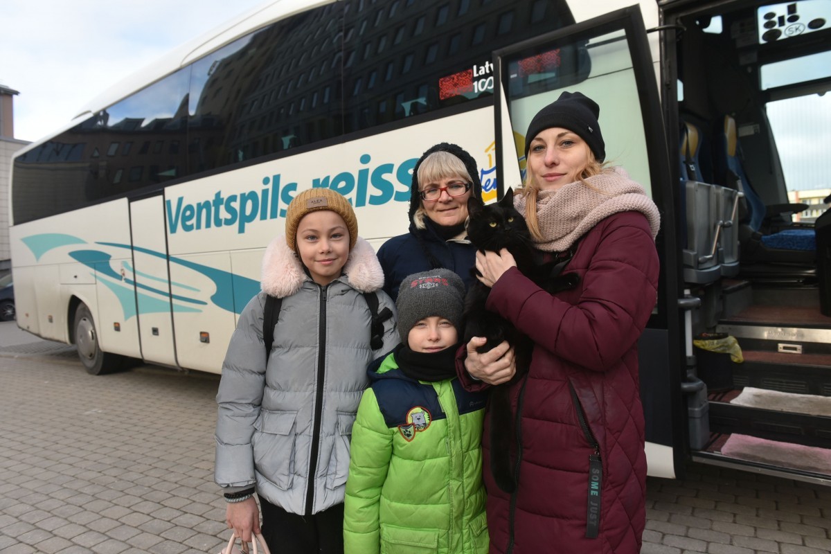 В служебной гостинице Вентспилсской высшей школы в настоящее время проживает более 30 просителей убежища из Украины. В понедельник днём к ним присоединилась семья Светланы, которую привезли из Польши на автобусе ОООС "Вентспилс рейсс", командированном в специально организованную поездку под управлением водителей Агриса Сниедзиньша и Рейниса Расы. Вентас Балсс уже писала, что в ответ на просьбу тренера по баскетболу Айнарса Багатскиса привезти из Варшавы в Латвию юных украинских баскетболистов, команда Вентспилс рейсса решила помочь и другим жителям Украины.