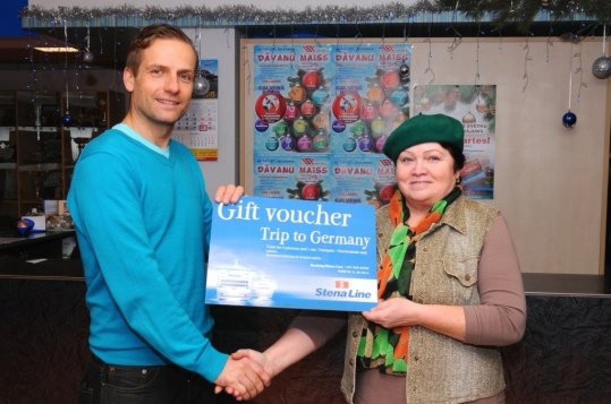 На сей раз главным подарком стала поездка на четверых в Травемюнде (Германия). Счастливой обладательницей путёвки стала бессменная посетительница Парка водных приключений Елена Белике, которая купила абонемент на посещение малого бассейна. Возможность отправиться в Травемюнде и переночевать в четырёхместной каюте с видом на Балтийское море подготовил паромный оператор Stena Line. Елена рассказывает, что выигранный приз стал для неё приятной неожиданностью. Любопытно, что счастливое число женщины – 13. Это подтвердил и 2013 год, под конец которого женщина стала обладательницей ценного приза. Елена планирует отправиться в путешествие в мае, когда потеплеет и можно будет насладиться отдыхом на палубе парома. С собой женщина возьмёт мужа, дочку и внука.