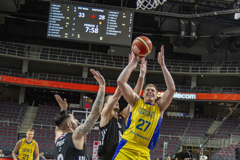 Баскетбольный клуб «Ventspils» в среду, 6 июня, в гостях в «Арена Рига» с результатом 81:78 (20:27, 27:12, 22:16, 12:23) победил команду «VEF Rīga» в шестом матче финальной серии Латвийской баскетбольной лиги OlyBet и таким образом уже в 10-й раз завоевал титул чемпионов Латвии.