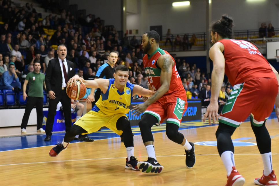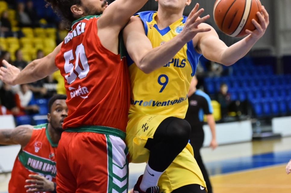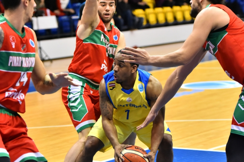 Баскетболисты БК Вентспилс одержали победу в первом матче 1/8 финала Еврокубка ФИБА, обыграв на своей площадке турецкую Pinar Karsiyaka со счетом 78:76.