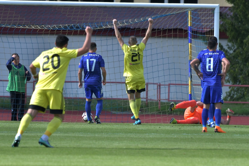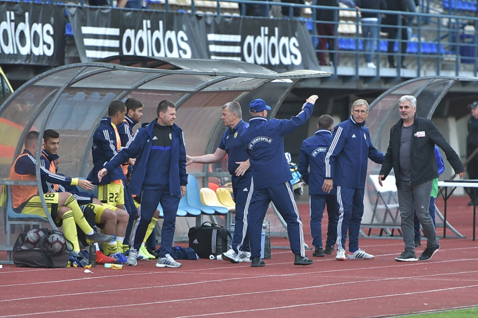 Гости довольно быстро пришли в себя и показали всё на что способны. А способны они на многое. Команда практически сохранила свой прошлогодний состав, в котором помимо албанцев играют футболисты из других балканских стран – Хорватии, Северной Македонии, Косово, показывая типичный для этого региона футбол. А это жёсткая борьба, порой провокации и симуляции в сочетании с хорошим контролем мяча и жаждой борьбы. До пропущенного второго гола гости на поле смотрелись неплохо. Да и статистические показатели у нас с ними практически равные: мы 13 раз пробивали по воротам и из них четыре – в створ, а гости – 12 (3). По угловым у нас равенство – по четыре, а по владению мячом гости нас превзошли – 53% на 47. Правда, созданные ФК Вентспилс моменты у ворот КФ Теута были гораздо опаснее, нежели у ворот Константина Махновского, который, к слову сказать, был очень уверенным и спокойным, что не могло не сказаться на обороне жёлто-синих – та играла без паники и, главное, надёжно. Почувствовав, что гости пытаются обеспечить давление через центральную зону, Игорь Клёсов своевременно – ещё в первом тайме – заменил Жоао на Павла Осипова.