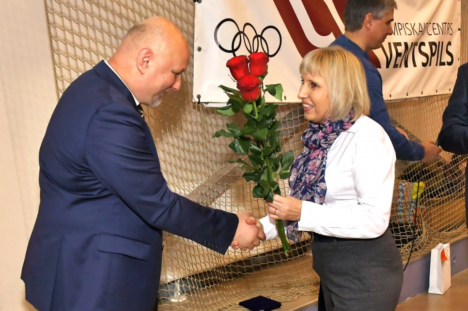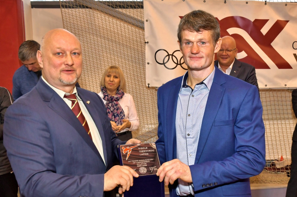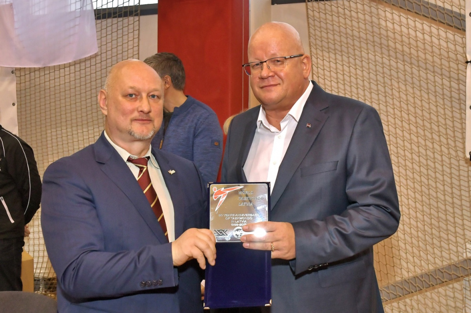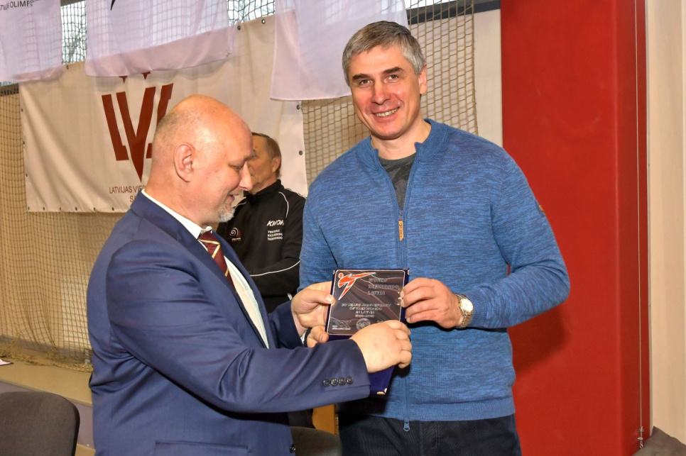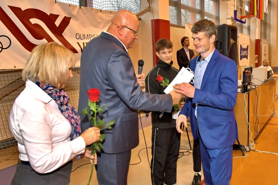 На открытии 1-й заместитель председателя гордумы Гунтис Блумберг поприветствовал спортсменов и вручил денежные призы Даниелу Галкину, Майклу Гасанову и тренеру Игорю Лыкову за успехи на Латвийской летней молодежной Олимпиаде.
