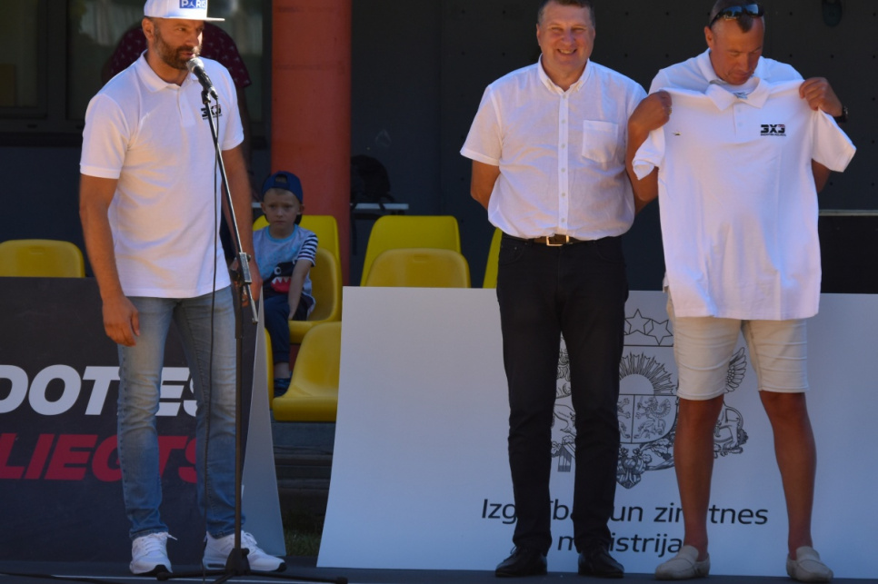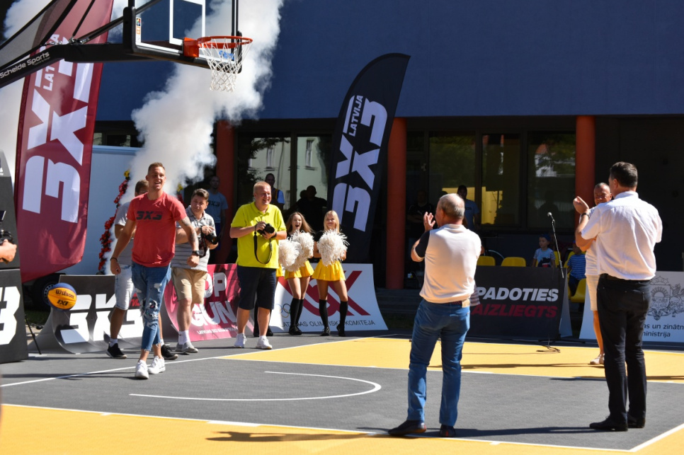 На спортивное площадке 1-й гимназии состоялось торжественное открытие площадок для игры в баскетбол 3х3, в котором принял участие председатель гордумы Айвар Лемберг и президент Латвийского баскетбольного союза Раймонд Вейонис.