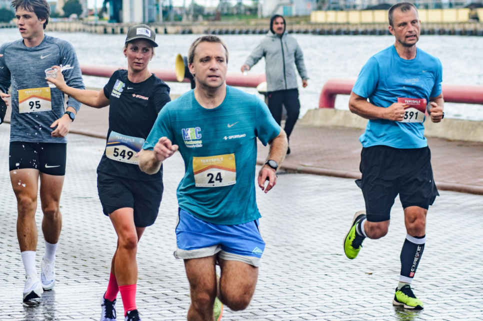 В дождливую погоду, но в радостной атмосфере на улицах города прошел Вентспилсский марафон, в котором приняли участие 1300 участников со всей Латвии и других стран.