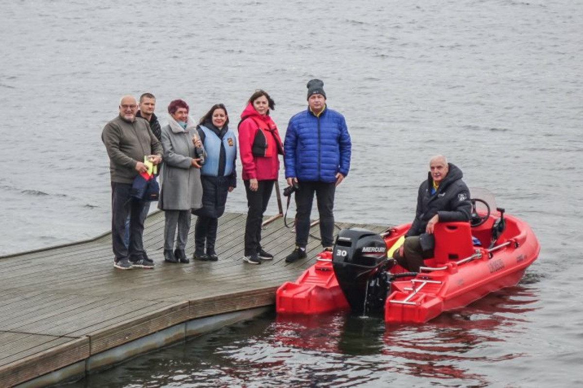 На гребной базе «Дампели» прошел торжественный спуск на воду новой моторной лодки. В мероприятии приняли участие и.о. заведующей Управлением образования Яна Баканауска и руководство спортивной школы «Спарс», а также главные пользователи моторной лодки – тренеры по гребле.