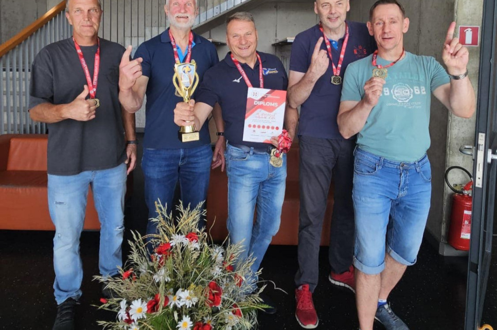 В мужском волейболе в возрастной группе 55+ соревновались четыре команды из Валмиеры, Мадоны, Даугавпилса и Вентспилса, и наша команда заняла 1-е место.