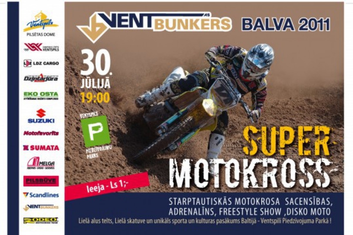 В субботу, 30 июля, уже в 14-й раз пройдут соревнования по мотоспорту Большой приз АО «Вентбункерс» Супермотокросс Вентспилс–2011.