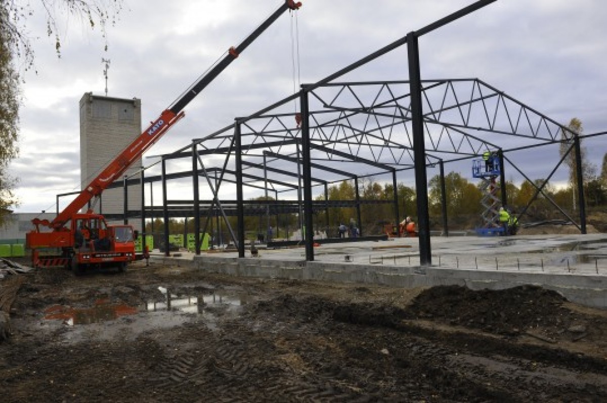 Строительство началось в конце июля, а к сегодняшнему дню возведены металлические конструкции каркаса здания и крыши. Следующий этап – прикрепление к конструкциям панелей стен и перекрытий. Работы ведёт рижская компания Steel Construction Latvia, – рассказал представитель компании Hydraulik Bauteile Baltic в Вентспилсе Альфред Гриезе. Завод должен быть построен уже в начале нового года. На участке площадью более 8 тысяч кв. м предприятие возводит производственный корпус размером около 1 000 кв. м. Здесь же будут офисные, складские и торговые помещения.