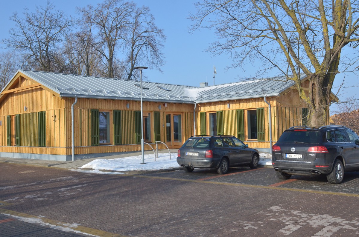 ООО Вентплац не позволяет себе лишних расходов. Это стало главным критерием к подбору проекта административного здания – оно должно быть экономичным в эксплуатации, небольшим по размеру, но функциональным. Два дорогих проекта были отклонены. Предложение рижского архитектора Рихарда Розите оказалось оптимальным. Здание площадью 155 кв. м, включая котельную, где также используются продукты лесопереработки, построено из газобетона и отделано деревом, в том числе деревянными ставнями, которые выполняют также роль жалюзи. Строительные работы выполнила кулдигская компания КОРП, предложившая наиболее выгодную цену. Строители выполнили работу качественно и в рекордно короткий срок.